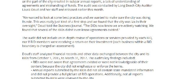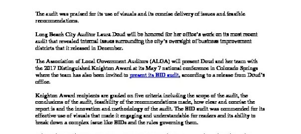 Long Beach City Auditor’s Work On City BIDs Honored By National Auditor Association