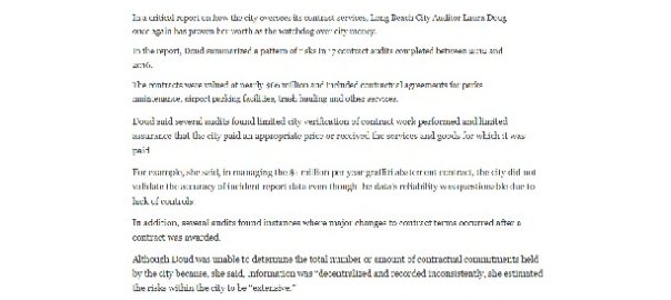 ‘Lax’ Contract Oversight Puts Long Beach at Risk, Audit Finds