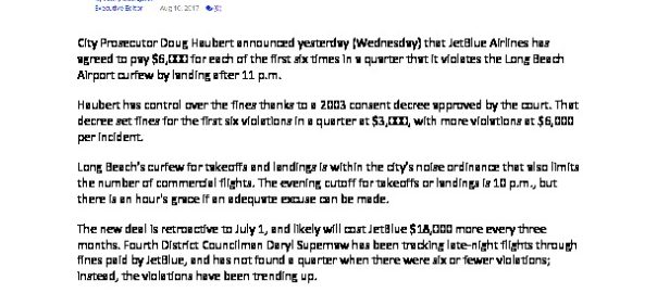 JetBlue To Pay More For Late Flights At Long Beach Airport