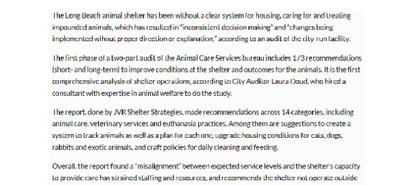 Long Beach Animals Under Stress as Shelter’s Resources Strained, Audit Finds