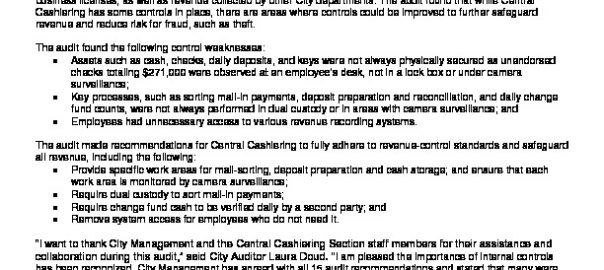 Long Beach City Audit Reveals More Controls Are Needed to Safeguard City Revenue & Prevent Theft