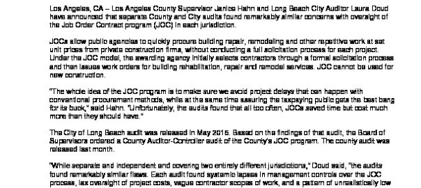 Separate Long Beach City and Los Angeles County Audits Find Similar Problems in Contracting Method