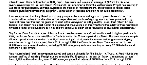 Long Beach City Auditor’s Report Shows Initiative Results in $33 Million Spent for Public Safety