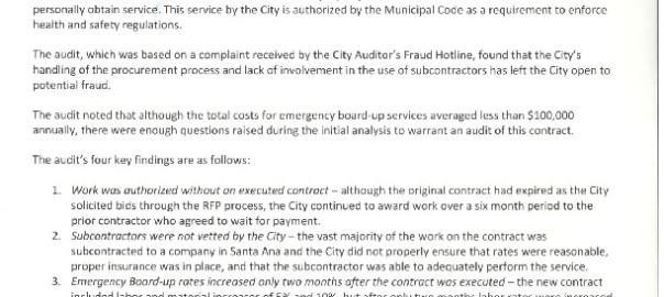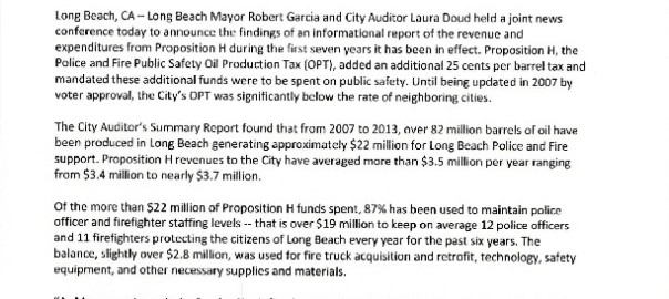 Mayor & City Auditor Laura Doud Release Summary Report of Proposition H Benefits