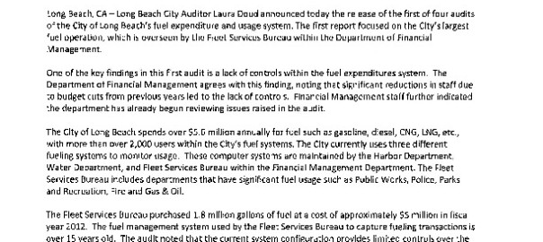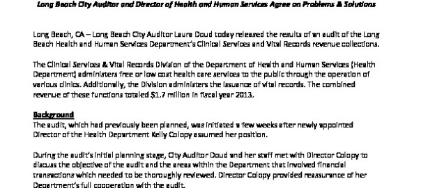 City Auditor Laura Doud Releases Audit of Long Beach Health Dept. Revenue Collections – A Collaborative Process