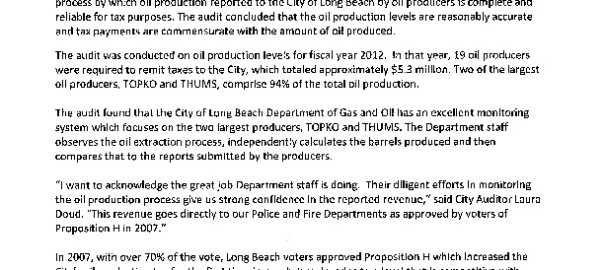City Auditor Laura Doud Releases Oil Production Audit