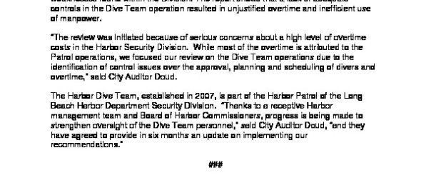 City Auditor Laura Doud Releases Harbor Dive Team Overtime Review